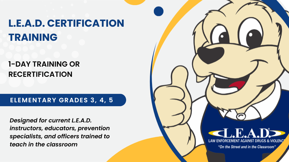 If you are currently a L.E.A.D.-Certified Instructor and need to recertify in LST, use coupon RECERT at checkout and L.E.A.D. will subsidize the cost of the Training Set. Pay only the Registration Cost plus shipping and handling of the Set. If you claim the coupon for someone who is not currently a L.E.A.D.-certified instructor, your agency will be billed for the cost of the Set.